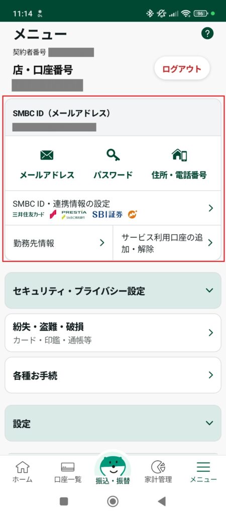 - 「SMBC ID連携情報の設定」をタップ