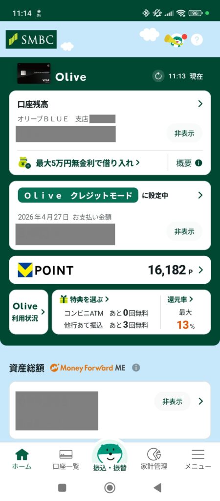 📷 【画像挿入】三井住友銀行アプリ Olive口座残高確認画面